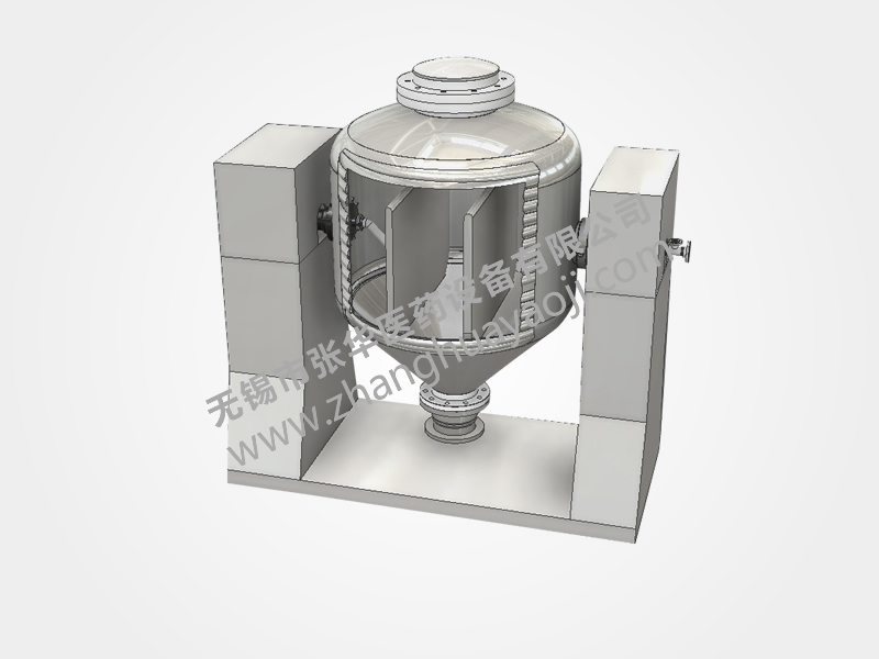 該設備與傳統的雙錐型麻豆污污污网站在线观看器主要區別在於:不需要過濾盤,在真空端將傳統的水平真空管設計改為帶彎管可以旋轉的結構,當朝上時可以用於進料,旋轉朝下時可以從麻豆污污污网站在线观看物料的上部抽取上清液,實現物料與母液的分離,代替了原有的過濾盤。由於彎管進料時朝上這樣有增加了裝料係數達到65%以上,而傳統水平設計的真空管裝料係數在50%以下。